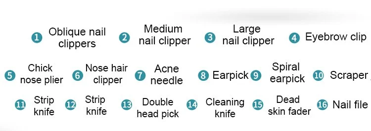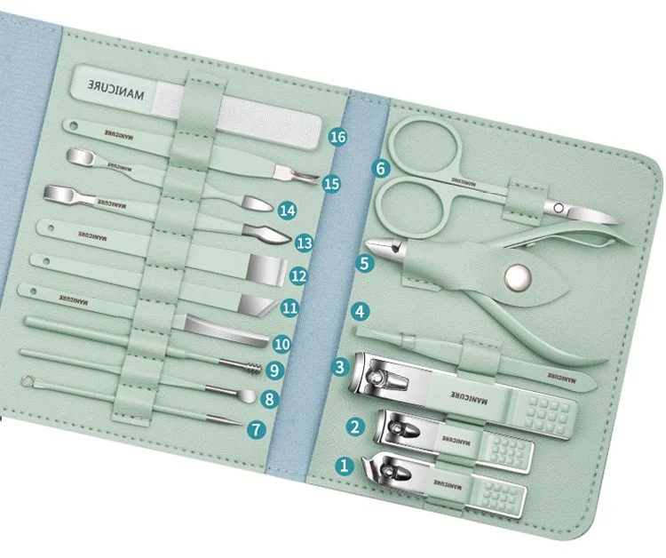 16Pcs Set Stainless Steel Nail Clippers Set With Folding Bag