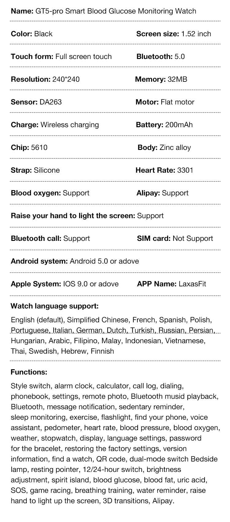 GT5-pro Smart Blood Glucose Monitoring Watch-Stay healthy-measure blood sugar levels, heart rate, sleep quality and other general health